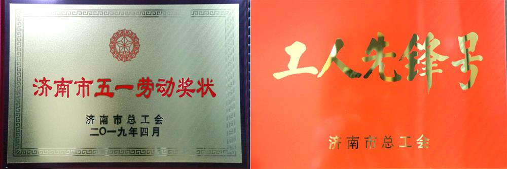 济南市“五一劳动奖状”(济南市总工会,2019.5) 投资发展部:工人先锋号(济南市总工会,2018.4)