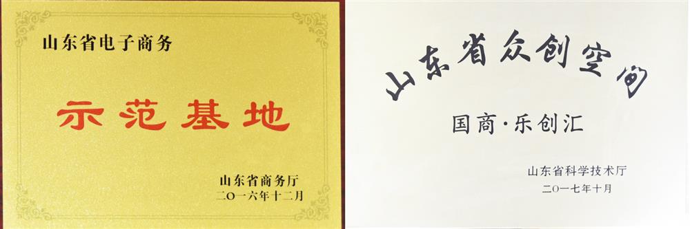 山东省跨境电商行业优质服务商(山东省跨境电子商务协会,2017) 2018年度最受欢迎电子商务服务机构(山东省电子商务促进会,2018) 电子商务创新园区("国际电子商务服务产业博览会山东省电子商务促进会",2016) 山东省电子商务示范基地(山东省商务厅,2016) 山东省众创空间(山东省科学技术厅,2017)