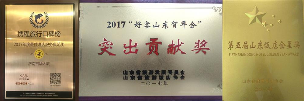 2017“好客山东贺年会”突出贡献奖(山东省旅游发展委员会、山东省旅游饭店协会, 2017.1)