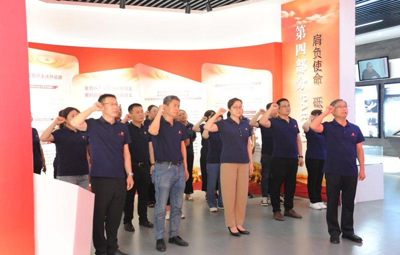 在宣誓厅,全体党员干部面对鲜红的党旗,庄严宣誓,重温入党誓词,深刻领会共产党人的初心使命,进一步坚定了理想信念。