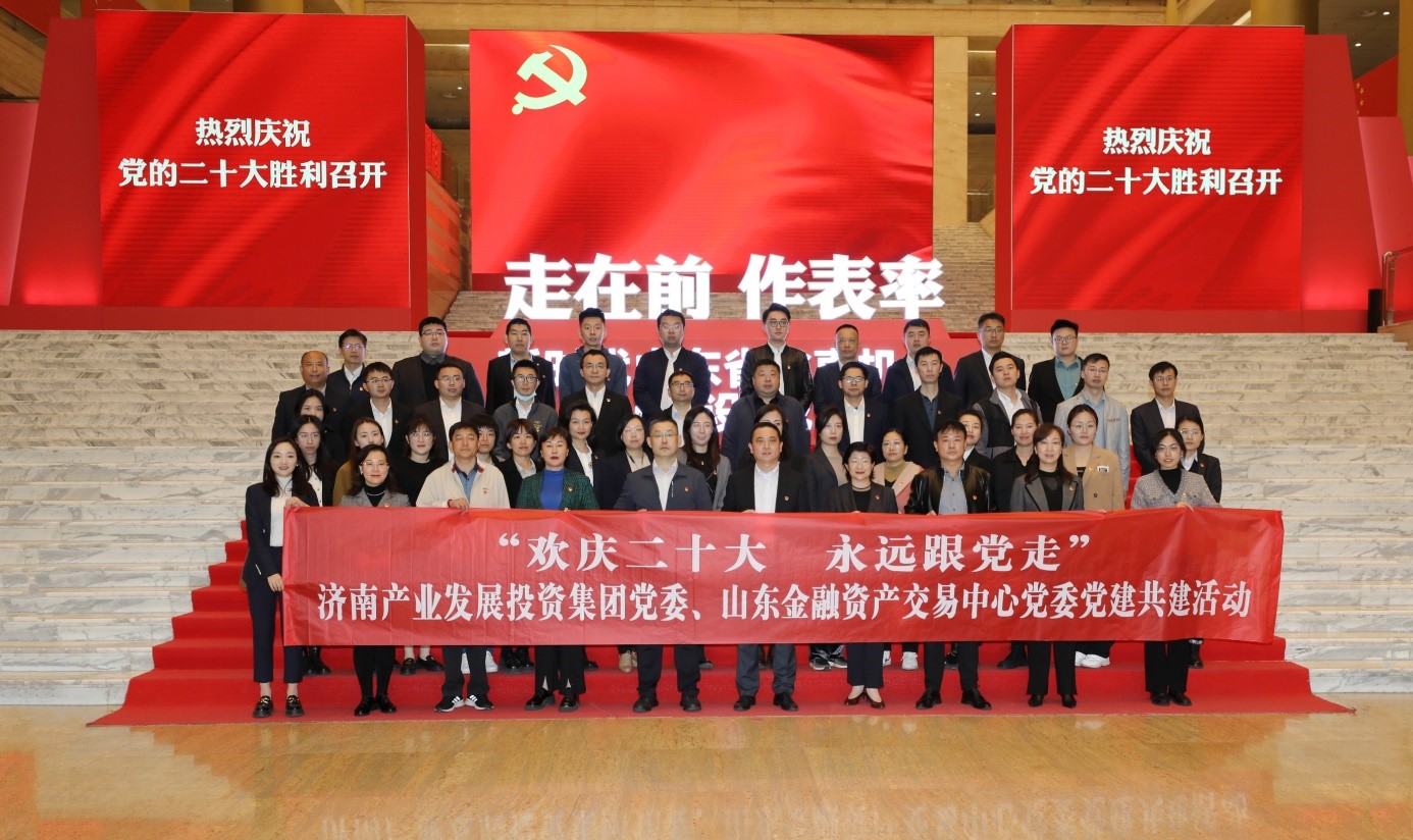 为学习贯彻党的二十大会议精神,进一步激励党员干部职工发挥先锋模范作用,坚守初心使命和责任担当,10月28日下午,济南开云登录口网页版集团党委与山东金融资产交易中心党委联合开展“欢庆二十大 永远跟党走”党建共建暨主题党日活动,两家单位领导班子成员及党员同志共计50余人参加活动。